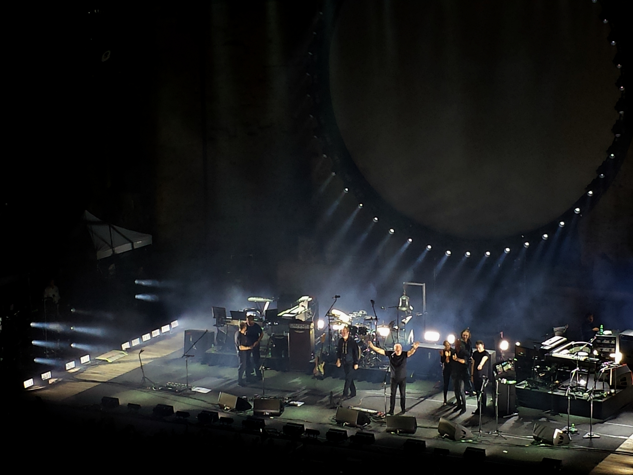 La foule est impressionnante, bruissante, vertigineuse et cosmopolite… on est venu de loin pour le voir. Parfois d’Amérique du Sud. La scène en bas est lumineuse et prête à accueillir les musiciens. Je n’ai jamais assisté à un concert dans ces conditions, dans un amphithéâtre aussi vaste et en plein air. Au bout de quelques minutes, les projecteurs s’éteignent et le show peut enfin commencer. David Gilmour, pilier du groupe Pink Floyd, fait son entrée sous les applaudissements nourris de la foule. Et c’est parti pour près de trois heures de concert. Évidemment, il était en tournée pour défendre son dernier album solo, Rattle that lock, qui est aussi le titre de cette fameuse chanson qui a fait couler tant d’encre et dont le gimmick est… le jingle de la SNCF. Bon, il a eu un coup de coeur, ça s’explique pas, c’est comme ça. L’étrangeté est vite évacuée et les titres s’enchaînent, faisant la part belle aux grands morceaux de Pink Floyd : Wish you were here, Shine on you crazy diamond, Us and them… beaucoup de choses que je connais bien et que j’aime. Et qui, bien malgré moi, me rappellent mes soirées de 1995 et 1996 lorsque dans ma chambre d’adolescente (presque bachelière) je travaillais sur mes dissertations de philo. Voilà. Je bossais avec le double album Pulse en fond sonore. Et j’ai eu 14/20 toute l’année, preuve que ça m’inspirait plutôt pas mal. Pour accompagner ces titres mythiques et les quelques nouveautés, un vaste cercle de projecteurs, qui aurait dû contenir un écran diffusant des images. On a appris par la suite que le dispositif vidéo aurait été trop lourd pour le pauvre théâtre antique et aurait risqué de dégringoler sur la scène. Tant pis pour les images, les lumières sont belles, balayent la foule et battent au rythme des accords de guitare lancinants de David Gilmour. J’avoue qu’entendre ce célèbre « son Pink Floyd », cette guitare si reconnaissable… c’est un grand moment d’émotion face à cette légende du rock (même s’il est tellement loin que ça pourrait être le Pape que je ne verrais pas la différence).