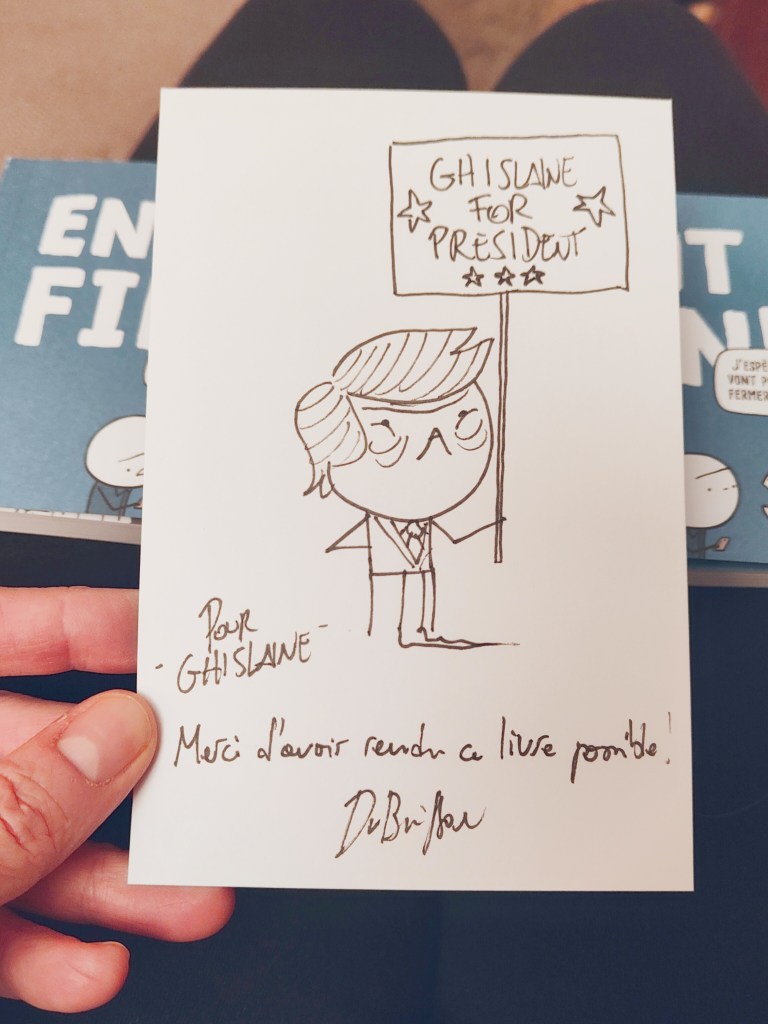 Que fait un illustrateur pendant une pandémie mondiale ? Il dessine et tourne en dérision tout ce qui nous effraie, nous assomme, nous exaspère. Le dessin d’actualité trouve une matière infinie dans cette situation qui n’en finit pas et tant mieux, autant en rire. Les petits strips de Marc Dubuisson font toujours mouche avec beaucoup de dérision et de subtilité. Cette édition est annotée par endroits afin de recontextualiser certaines situations que nous pourrions avoir oubliées, déjà. Ce livre est édité chez Exemplaire Editions, une nouvelle maison d’édition qui veille à offrir aux auteurs une juste rémunération. J’ai donc pré-acheté mon exemplaire plusieurs mois avant sa parution, ce qui m’a valu une chouette carte dédicacée.