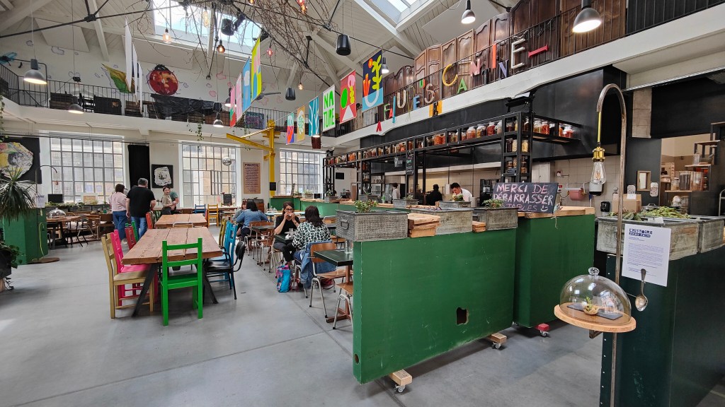 Au cœur de la Cité du design, la Fabuleuse Cantine est le lieu idéal pour faire une pause sans avoir à courir trop loin entre deux expositions ! Dans ce bâtiment industriel haut de plafond, les espaces ont été magnifiquement agencés et décorés afin d’en faire un lieu accueillant et cosy. A l’extérieur, une grande terrasse, au calme puisque loin de toute rue, donne envie de se prélasser lorsqu’il fait beau. Des soirées ginguettes – Déglinguette – sont organisées certains soirs pour prolonger le plaisir.