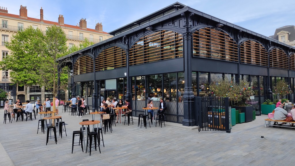 Ces halles datant de 1872 ont retrouvé une nouvelle jeunesse fin 2021. Elles abritent les traditionnels commerces qu’on peut trouver dans des halles : fromager, boucher, boulanger, primeur…mais aussi épicerie de produits locaux, street food, un bar. Il suffit d’aller commander ce qui vous fait plaisir et de déguster sur les tables à l’extérieur, ambiance conviviale garantie !