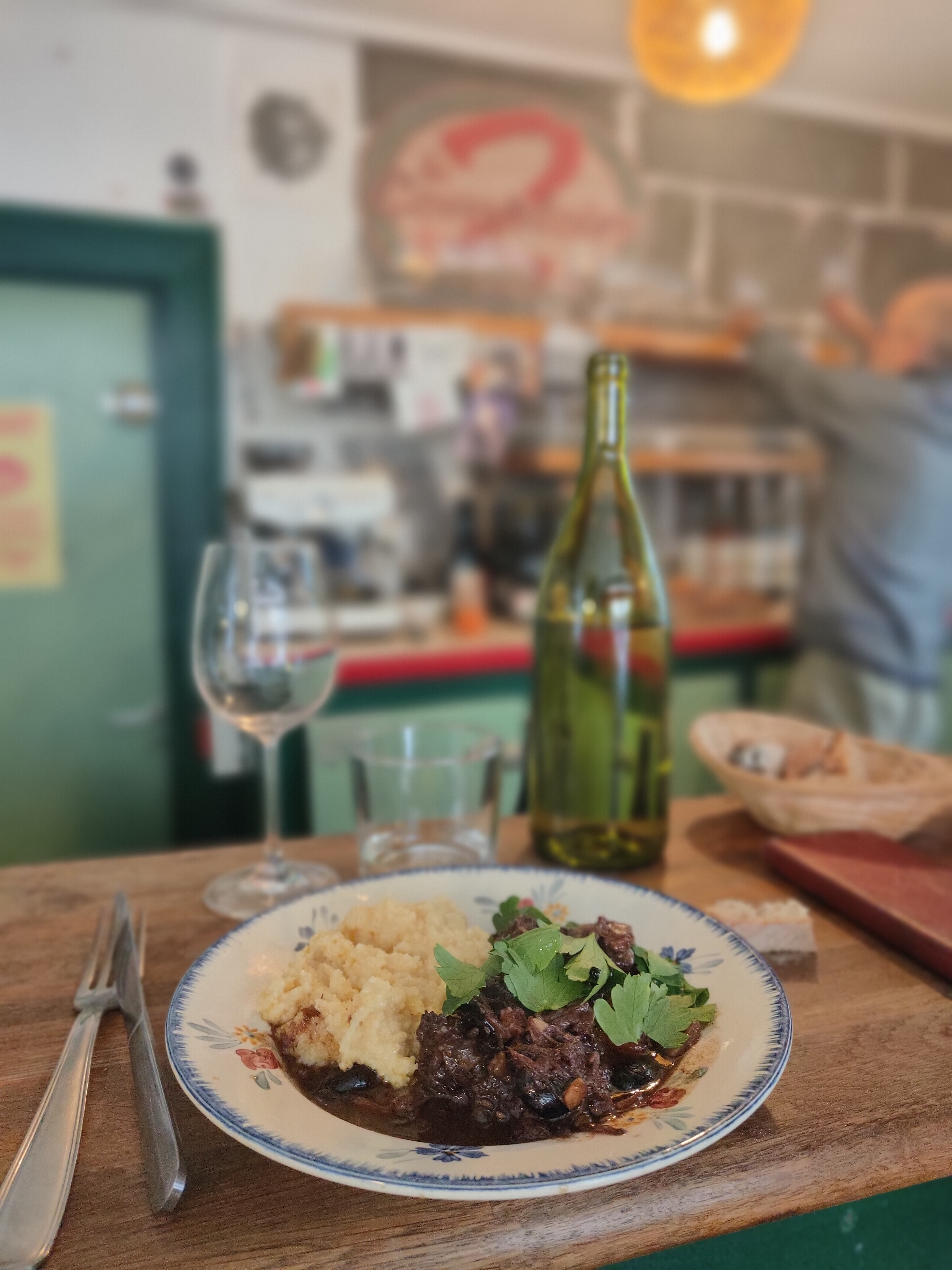 Dimanche 25 janvier, ce petit bistrot de quartier de la rue du Port organisait un déjeuner mystère avec Eric Roux, président du festival du court-métrage, aux fourneaux. C’était un peu un pari, n’ayant jamais mis les pieds dans cet établissement, et ne sachant pas ce qu’on allait y manger. Eh bien ce fut une expérience hautement satisfaisante ! Super accueil, plats délicieux, connaissances croisées, vins découverts, ambiance chaleureuse, tout y était.